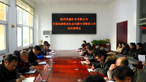 1月4日下午,美鑫礦業公司召開專題會議,傳達貫徹陜西美鑫產業投資有限公司“集中開展違規收送禮金問題專項整治工作動員部署會”會議精神。公司黨政班子成員、部門負責人、全體黨員及重要崗位管理人員共三十余人參加了會議。會議由礦業公司黨支部書記、總經理郭百強同志主持。 首先,會議傳達學習了“中共陜西美鑫產業投資有限公司委員會關于轉發有色集團黨委《關于集中整治形式主義、官僚主義的通知》的通知、《中共陜西美鑫產業投資有限公司委員會關于印發集中開展違規收送禮金問題專項整治工作實施方案的通知》文件及公司領導“五個到位”重要講話精神,對礦業公司下一步集中整治形式主義、官僚主義工作進行了安排部署。 會議要求:一是要高度重視,要清醒認識全公司自上而下整治形式主義、官僚主義的工作力度,及時將會議精神傳達到全體干部職工之中。要將作風建設作為全公司樹立良好形象、促進工作開展的有力抓手,持之以恒的堅持下去。二是全體黨員干部要從自身做起,管好隊伍帶好人,起模范帶頭作用。三是各部門要結合專題會議精神,廣泛開展糾正“四風”大討論活動。充分查找解決工作中存在的作風問題。四是嚴格把好春節期間廉潔關,自覺遵守中央八項規定和上級各項紀律規定,嚴禁參加參建單位和供應商的宴請,營造風清氣正的節日氛圍。五是嚴格遵守黨員領導干部重大事項申報制度,上報個人婚喪嫁娶等重大事項。同時,礦業公司向職工群眾公布了黨風廉政建設舉報電話,設置了意見箱,充分發揮了群眾監督檢舉作用,確保廉潔建設各項工作落在實處。
