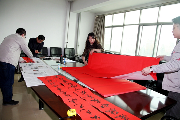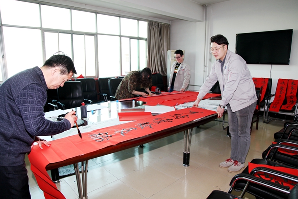 新春臨近,千家萬戶都要張貼春聯,是象征吉祥、表達人們向往美好生活的傳統風俗。1月31日,美鑫公司特邀書法愛好者書寫春聯,將節日的祝福提前送到員工身邊。 只見書法老師在提前裁好的紅紙上盡情潑墨、筆走龍蛇,一張張散發著清新墨香的喜慶大“福”字,多種書體龍飛鳳舞各顯神韻,一副副春聯盡顯眼前。機關辦公樓的職工也紛紛聞訊趕到現場觀看書法老師書寫對聯,不時發出一聲聲驚嘆,也為書法老師出色的毛筆字喝彩。看,那對聯的內容也是相當的豐富:有對美鑫的祝福“以人為本科學發展循環經濟結碩果,砥礪奮進逐夢前行示范園區譜新篇”,也有年輕人對新年的期望“暴瘦”等。 “煤電鋁循環打造千秋昌盛,可持續發展鑄就輝煌大業!睍ɡ蠋煘槊丽喂緯鴮懥藥资睂β,為年輕人也送出了新年期望十余張字。拿到祝福的職工也紛紛對老師表示感謝,希望自己在新的一年中能夠向手里春聯寫的那樣:快樂、暴瘦、暴美。 |