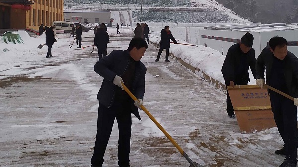 紛紛揚(yáng)揚(yáng)的小雪突如其來,美鑫礦業(yè)公司冶坪煤礦十里礦區(qū),銀裝素裹,分外妖嬈。為保障人員出行安全,公司組織人員鏟除路面積雪。