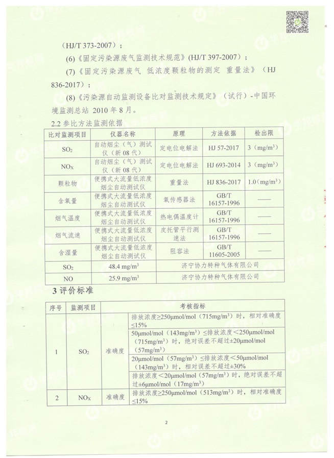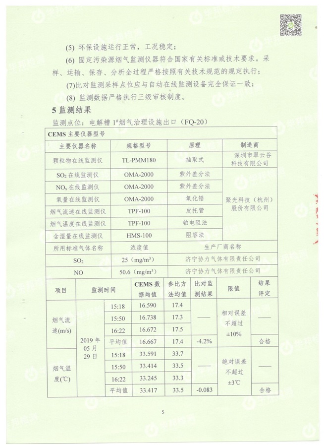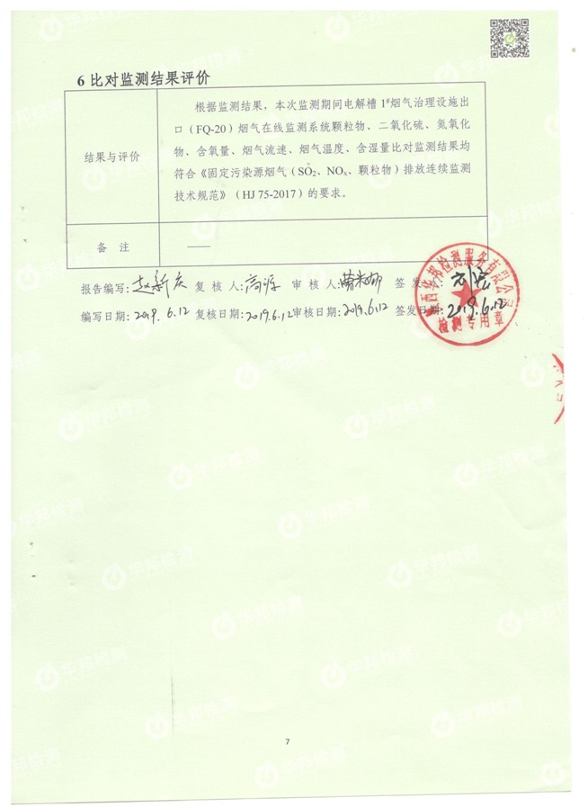 1.1電解槽煙氣治理設施總排口CEMS在線設備比對監測