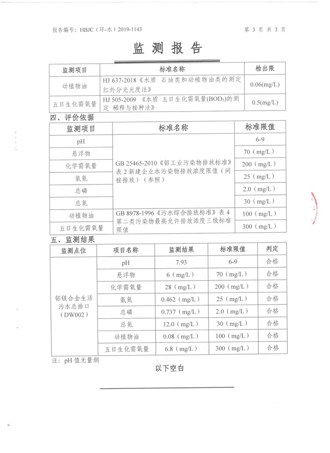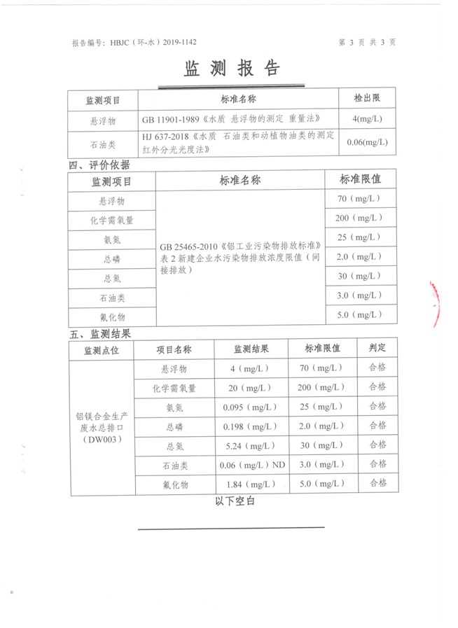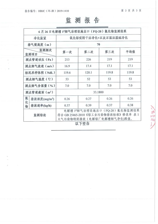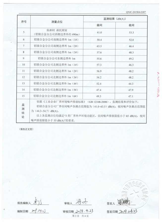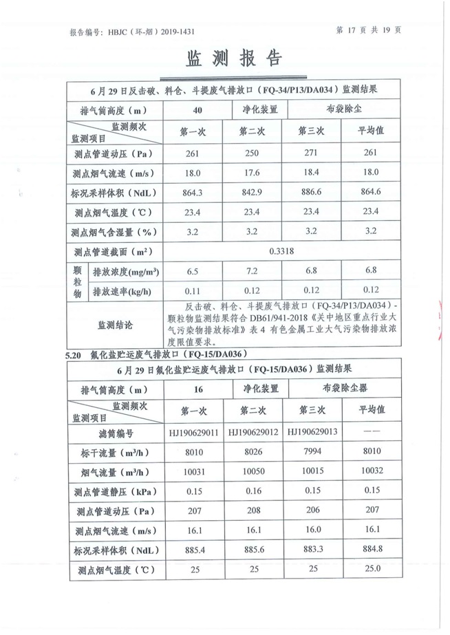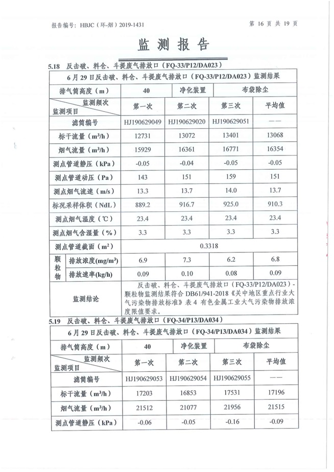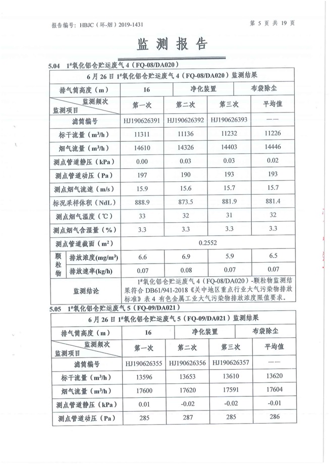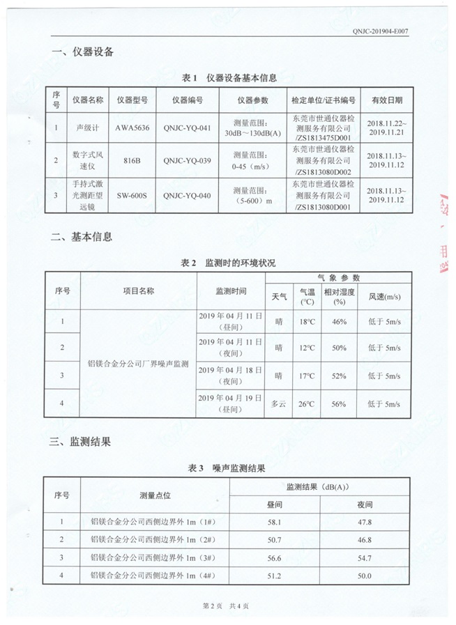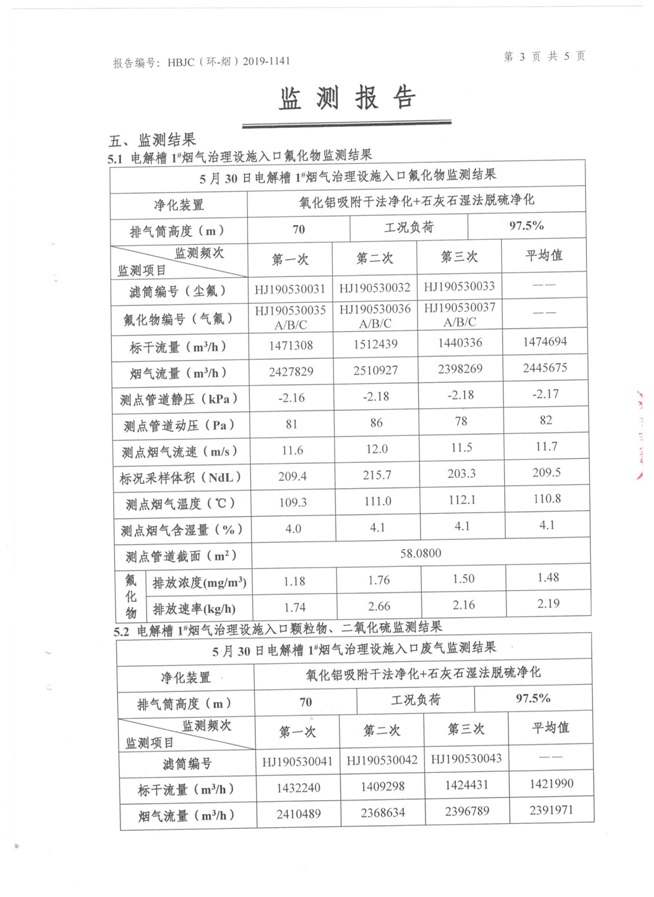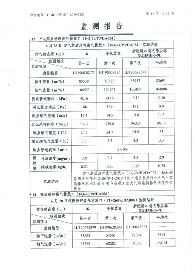 一、基礎信息: 陜西美鑫產業投資有限公司 統一社會信用代碼:91610200567136996Y 法定代表人:高曉兵 生產地址:陜西省銅川市董家河工業園區 聯系方式:09196982605 生產經營和管理服務的主要內容、產品及規模: 美鑫公司在陜西有色、陜西煤化兩大集團的正確領導下,在銅川市委、市政府的關心支持下,充分利用銅川資源型城市轉型政策,依托園區區位優勢,擬投資150億元,建設年產30萬噸預焙陽極、120萬噸煤礦、30萬噸鋁鎂合金及配套動力站、20萬噸鋁深加工、年吞吐量500—800萬噸物流園等循環經濟項目。該集群項目已被列入《陜西省國民經濟和社會發展第十二個五年規劃綱要》,為陜西省“58123”項目之一。美鑫公司以循環經濟為路徑,堅持經濟增長與環境保護協調發展,聚合資源與資本,走綠色發展、清潔發展、低碳發展的循環經濟轉型升級之路。 陜西美鑫鋁鎂合金分公司采用的500kA預焙陽極電解槽,自動化程度高,電解槽打殼、加料全過程均由微機自動控制,從而使槽罩開啟次數顯著降低,電解槽集氣效率能夠達到99%,大大地減少了煙氣無組織排放。項目配置了2套電解煙氣凈化系統,經捕集的煙氣通過排煙支管進入排煙總管,采用電解鋁生產原料—氧化鋁吸附阻濾煙氣中的氟化氫氣體及含氟煙塵,吸附后的載負氧化鋁進入袋式除塵器,經氣固分離后進入石灰石—石膏脫硫系統脫硫。 陜西美鑫產業投資有限公司鋁鎂合金分公司2019年2季度自行監測如下: 二、監測方案: 1 大氣污染源監測