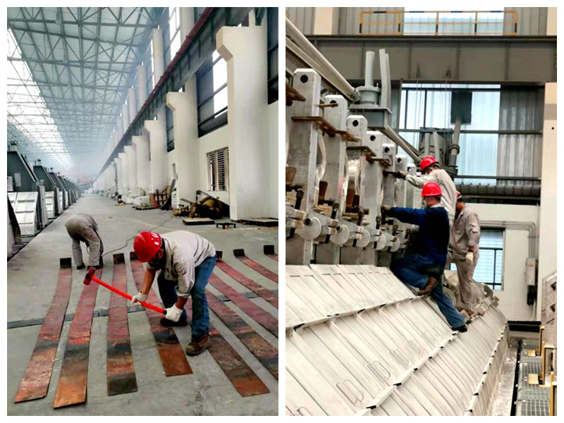 驕陽似火,熱浪如涌,持續高溫的日子肆虐著。在這樣的“桑拿天”里,鋁鎂合金檢修車間職工戰高溫、斗酷暑,從大局出發,任勞任怨,用辛勤的汗水譜寫出一曲奉獻者之歌。 7月24日以來,為減輕電解生產壓力,齊心協力完成第二階段電解槽啟動投運任務,檢修車間在自身檢修任務繁重、人員緊張的情況下,主動請纓,動員發動內部力量,主動承擔起電解車間分流器、軟連接的安裝任務。 7月24日當天,檢修車間立刻行動起來。車間主任鄭云峰主持召開動員大會,號召車間全體職工凝聚力量,克服一切困難,以飽滿的工作熱情投入到電解槽啟動投運攻堅戰中。當天晚上,通過抽調加班方式,安裝人員按時上崗。 七月流火,熱浪滾滾,但檢修車間職工的工作熱情比氣溫還高。一個軟連接重達50多斤,一個人扛上肩,而后爬上幾米高的電解槽安裝,難度可想而知!問題不止于此,每個電解槽需要安裝48個軟連接,每安裝一個電解槽,這樣的動作就要重復48次。汗水不停地流下來,很快就濕透了工裝。為確保工作進度、減輕工作強度,安裝采取分組方式,輪番上陣。職工們放棄雙休日,加班加點工作。輕度中暑時常發生,一支藿香正氣水下肚后又沖了上去。揮汗如雨的職工,用實際行動詮釋著美鑫職工愛崗敬業的錚錚誓言,用汗水共譜努力、團結、共戰高溫的主旋律。