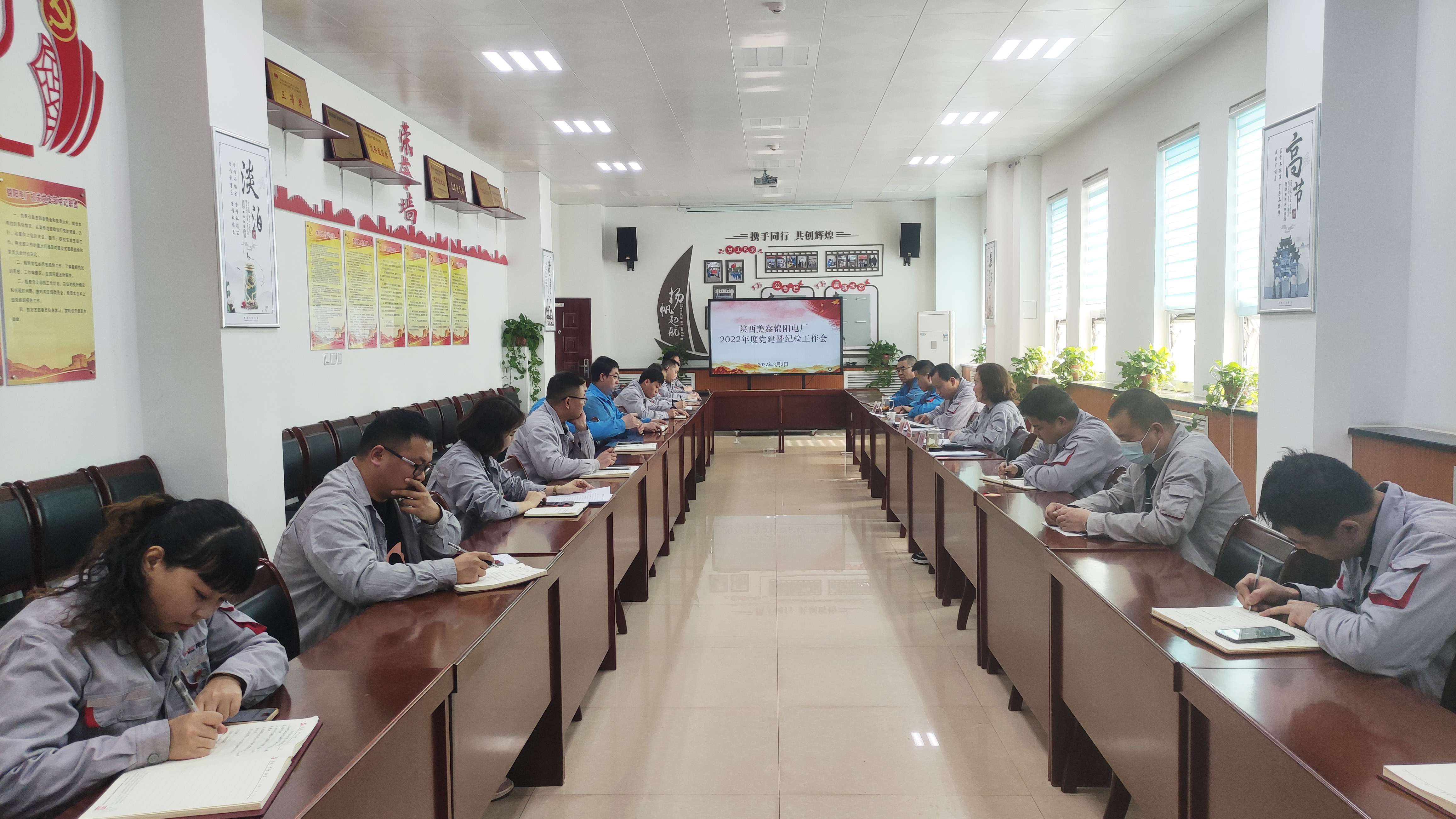 為迅速傳達落實有色集團及公司2022年黨建暨紀檢監察工作會議精神。3月3日下午,錦陽電廠召開2022年黨建暨紀檢工作會議,全面回顧總結2021年電廠黨建和紀檢工作,安排部署2022年重點工作。電廠領導班子成員、中層干部、各黨支部委員、團支部書記參加會議。黨總支副書記劉銀玲主持會議。會上,黨總支書記、經理孫陽作2021年度黨建工作報告,劉銀玲傳達了陜西有色集團及公司2022年度黨建暨紀檢監察會議精神并作2021年度紀檢工作報告。會議強調,各支部、各部門要迅速傳達落實各級會議精神,結合實際研究制定工作計劃,有序開展各項工作;全體黨員干部要提高政治站位,積極落實有關黨風廉政建設工作要求,突出主責主業,認真履職擔當,有效推進各項任務高質量完成;要推動黨建與生產工作深度融合,切實把黨建引領企業發展的要求轉化為黨員干部的思想自覺和行為習慣,為公司、電廠譜寫高質量發展新篇章提供堅強保障,以優異成績迎接黨的二十大勝利召開。對貫徹好、落實好會議精神,孫陽提出三點要求:一是認清形勢,切實增強危機感、緊迫感、責任感。全體黨員干部要全面做好面對困難和挑戰的思想準備和工作準備。二是正視困難,全面提升管理水平。在實際工作中認真找差距、查不足,努力破解生產經營和發展難題,不斷提升管理水平。三是多措并舉防范各類風險,全力保障機組安全平穩經濟環保長周期運行。會上,孫陽與各黨支部簽訂2022年度黨風廉政建設責任書。 |