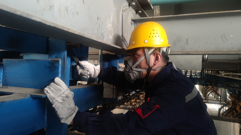 今年31歲的閆飛是車間的青年骨干,作為一名復轉軍人,他所在班組肩負著成型車間生陽極核心生產任務。隨著封控開始,他嚴格遵守公司疫情防控要求,結合班組實際情況,一手抓防疫、一手抓生產,組織開展防疫及安全生產培訓,協調溝通做好班組職工基本生活保障,不落一人配合開展核酸檢測,帶領班組保質保量完成當班生產任務,用實際行動踐行了“來之能戰,戰之能勝。”的軍人形象。