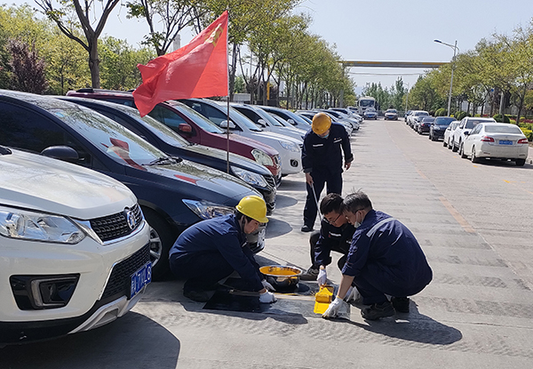 陽極分公司原有車位經過長期雨水沖刷和車輛碾壓,多數車位線已模糊不清,車輛騎線壓線停放現象時有發(fā)生,給職工停車造成很大困擾,也存在安全隱患。為消除隱患,加強分公司車輛安全管理,4月20日,陽極分公司團總支積極組織團員青年開展“車位畫線防隱患,規(guī)范停車你我有責”主題團日活動。此次車位畫線以節(jié)約人力物力為原則,在原車位底線基礎上進行補充加深,同時,考慮到畫線過程中模具由于反復使用,油漆會沿著模具邊沿流入底部,影響畫線效果,團總支提前準備了兩套T型、L型橡膠模具交替使用,確保工作質量和進度。一大早,團員青年們就提著油漆,帶著工具來到指定地點,四人為一組,一人清掃,一人刷漆,兩人搬移模具,大家很快就畫完了計劃區(qū)域內車位線,并在車輛入口拉上警戒線,待油漆干后便立即投入使用。分公司停車場現有車位222個,目前,部分車位已畫線完畢,分公司團總支后期將根據天氣情況,及時組織團員青年對剩余車位線進行補畫,為分公司廠區(qū)車輛安全管理貢獻團青力量。 |