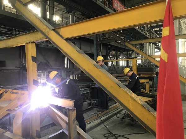 | 7月6日下午4點50分許,擁有多年生產經驗的電解質清理工薛金紅察覺出組裝車間裝卸站隱約傳出異響,隨即立即報告當班班長,班長匯報車間后果斷叫停生產進行排查。經過仔細排查,發現是裝卸站翻盤機構框架長時間高強度負載運行,出現多處裂紋,附屬連桿彎曲變形所致,如果得不到及時處理,舉升機構將不能正常動作,導致陽極托盤無法實現翻盤和進入下道工序。 接到設備故障訊息,車間立即啟動應急預案,現場研究制定維修方案。此次裝卸站翻盤機構變形較為嚴重,維修時間緊、任務重、難度大,而且主要以焊接、切割、校正作業為主,當班焊工人手嚴重不足。剛下班洗完澡的多名黨員在得知情況后,立即返回車間投入積極配合搶修作業。在搶修過程中,為了保證電解生產使用陽極,車間啟動應急預案,利用裝卸站上站工序繼續為澆鑄班提供陽極導桿,陽極導桿上線后托盤在上站工序下線(傾翻工位和卸站工位停用),由人工將托盤中的大塊電解質和殘陽極大塊分揀出來,最后利用天車和叉車裝入陽極托盤中,形成臨時生產閉環。在確保應急預案安全可靠的情況下,作業人員按照搶修方案,將翻盤機構上部拆除,對有裂紋的翻盤總成支架逐一細致排查焊接,對附屬連桿進行焊接矯正并加裝背筋鋼板,以確保焊接強度。漫漫黑夜籠罩了組裝車間廠房,而裝卸站旁卻是燈光閃耀、焊花四濺,抬扶、點焊、敲打……整個搶修工作在有條不紊的進行著,大家相互鼓勁打氣,終于在晚上9點40分圓滿完成了搶修任務,經負載調試一切正常,裝卸站再次投入使用。 此次緊急搶修作業,有力保障了車間生產工作的連續性,充分彰顯了基層黨員沖在前、干在前的優良作風和使命擔當,在崗位中詮釋了高水準、顧大局的無私奉獻精神。 |