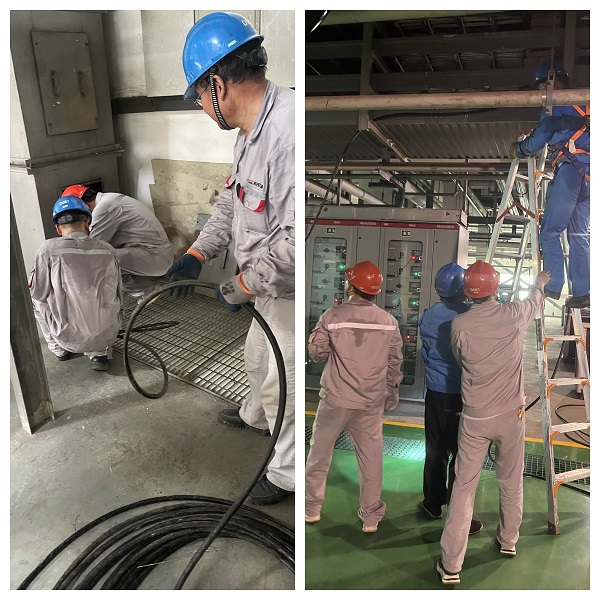 為進一步增強黨員干部的凝聚力、戰斗力,更好地保障電廠設備安全平穩運行,8月21日,錦陽電廠檢修黨支部開展“鋪設設備電纜 助推安全生產”主題黨日活動。 錦陽電廠#4機汽機主廠房屋頂散熱風機原設計進線電纜四乘四平方,夏季工況下,不能滿足六臺屋頂散熱風機同時持續運行,廠房內熱量無法及時排出,存在環境溫度高導致重要設備跳閘的風險,給機組安全運行帶來不確定因素。針對此項問題,檢修黨支部迎難而上,安排人員現場核對各散熱風機的額定功率、額定電流并進行定制計算,經分析,判定原因為線徑偏小不滿足風機同時運行需要。最終確定解決方案:更換原四乘四平方電纜為四乘十平方,保證原MCC通風柜電源開關容量不變,重新設定保護定值。隨后黨員干部帶頭、職工積極參與,進行完作業前技術和安全兩交底后,大家帶著近百斤中的電纜及人字梯、鐵絲、扎帶等工器具迅速投入電纜鋪設工作中。本次作業分成三個小組,第一組從12.6米上方的除氧器平臺放下電纜,第二組在電纜橋架理順電纜并用扎帶固定電纜,第三組在下一層平臺拉電纜。在大家齊心協力下,歷時三個多小時,近百米的黑皮電纜被規整的放在豎井和橋架內直達MCC通風柜,經電氣專業人員對電纜頭壓制線鼻固定后接線、設定新的保護定值,風機試轉正常,此項作業圓滿完成。 本次活動,在進一步增強了廣大黨員干部的責任感和服務意識的同時,為電廠設備長周期穩定高效運行提供了保障。 |