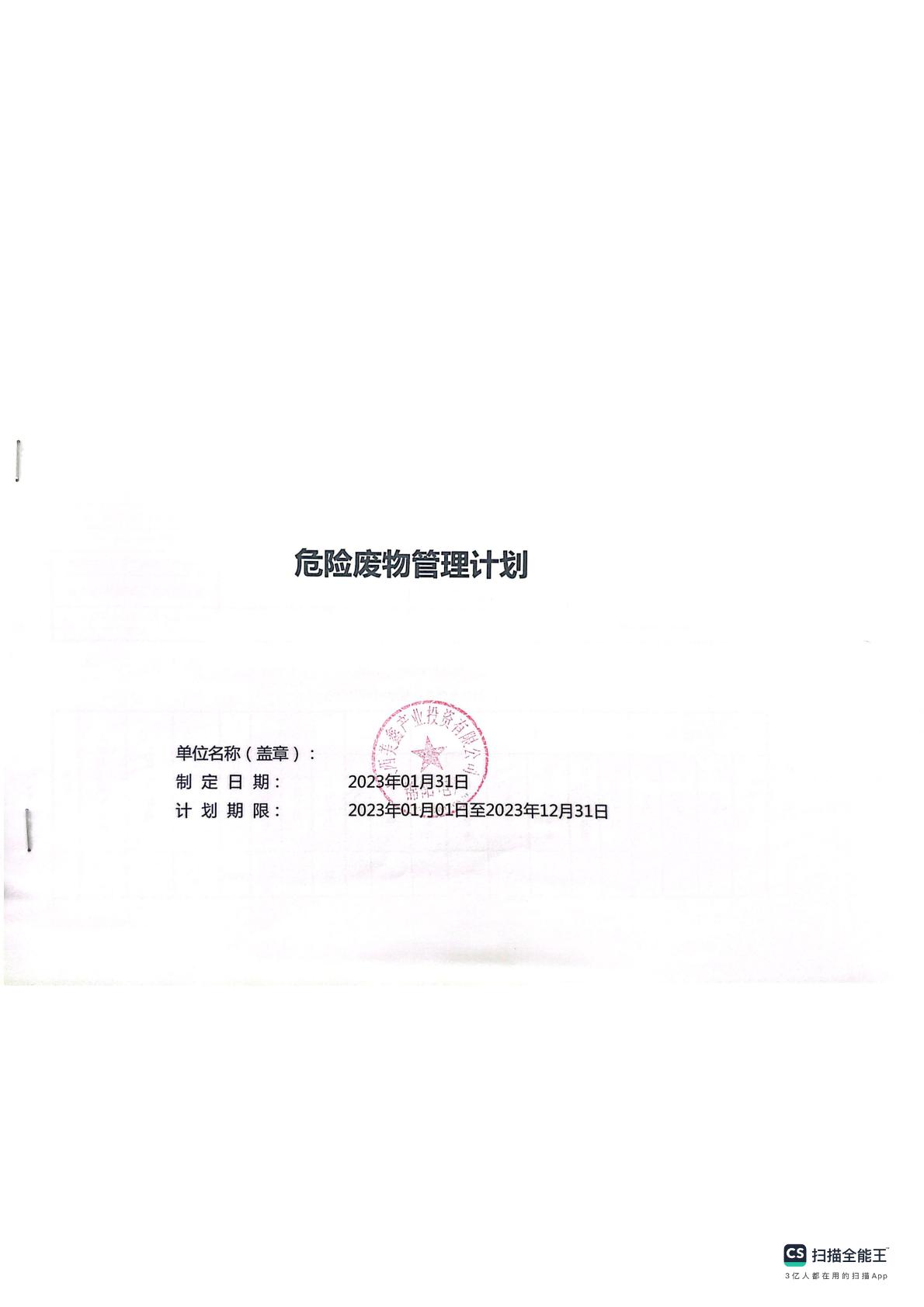 危險廢物管理計劃