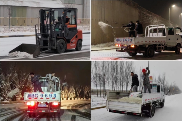 2024年2月1日大雪飄灑而致,滿眼望去,大地銀裝素裹,潔白無瑕。受降雪影響,道路濕滑,給車輛運行帶來極大的安全隱患。為全力做好雨雪天氣下車輛運行安全工作,工藝車隊黨支部“以雪為令”,立即啟動雨雪天氣防滑應(yīng)急預(yù)案,組織人員全力以赴投入到除雪工作中。 1日傍晚,雪量加大,應(yīng)急人員結(jié)合實際分成兩個小組,分別到公司各個坡道、彎道拋撒融雪劑,特別對車流量較大的210國道至美鑫公司辦公樓的大坡道進行細(xì)致清理,確保了職工上班和車輛運輸?shù)陌踩珪惩ā?o:p> 2日早晨10時許,灰蒙蒙的天空,雪花漫談飛舞,大雪不期而至,轉(zhuǎn)瞬間,原本灑過融雪劑的道路,又被積雪覆蓋。工藝車隊安排機動人員給坡道彎道繼續(xù)拋灑融雪劑,又利用制作的鏟雪工裝,推鏟地面積雪,減少融雪劑投入,確保清雪工作及時高效。 漫天飛雪,天寒地凍,但大家不怕冷、不怕苦、不怕臟,干勁十足,持續(xù)堅守崗位監(jiān)控雪量和道路積雪情況,用行動全力保障公司職工出行安全和生產(chǎn)安全。 |