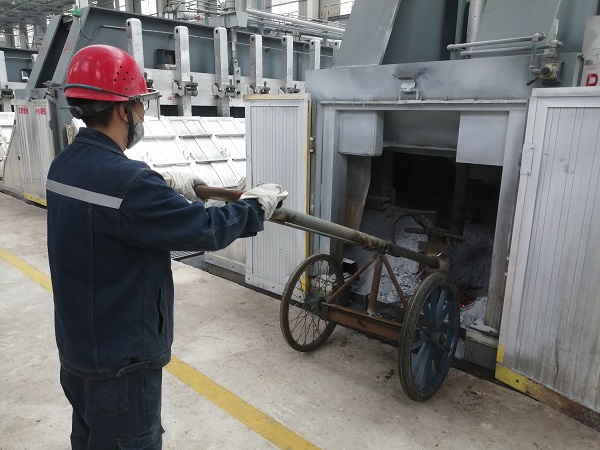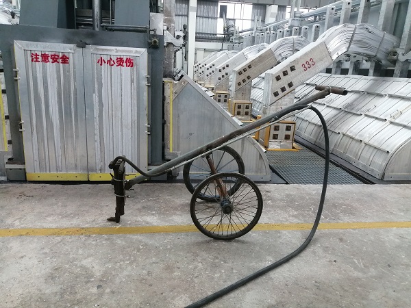 在500KA大型電解槽的前后兩端分別各有一個(gè)直徑約35-40公分的圓形洞口,主要用于鋁液吸出、炭渣打撈、物料添加、效應(yīng)熄滅、爐底勾帶等日常作業(yè),但是由于電解質(zhì)溶液的不斷凝固,需要定期對前后端洞口進(jìn)行擴(kuò)展維護(hù)。 日常作業(yè)時(shí),作業(yè)人員需要使用手動風(fēng)鎬進(jìn)行擴(kuò)孔作業(yè),不但勞動強(qiáng)度大,而且需要長時(shí)間近距離貼近開孔處,存在一定的安全隱患。為消除隱患提高效率,在鋁鎂合金分公司電解一車間技術(shù)革新小組積極攻關(guān)下,一輛高效、簡便,可實(shí)現(xiàn)遠(yuǎn)距離操控的兩端頭開孔車于近日投入使用。該開孔車采用自行方式及杠桿原理,將手動風(fēng)鎬固定在開孔車前端,人工開孔距離擴(kuò)展至2米外,既保證了風(fēng)鎬開孔力度和擴(kuò)孔質(zhì)量,又減少了高溫輻射,勞動強(qiáng)度大幅度降低,開孔速度較以前也提高了3倍以上。 兩端頭開孔車的投入使用,是2024年電解一車間技術(shù)革新的首例成果,后續(xù),電解一車間技術(shù)革新小組將持續(xù)發(fā)揚(yáng)工匠精神和創(chuàng)新精神,讓更多創(chuàng)新成果轉(zhuǎn)化為現(xiàn)實(shí)生產(chǎn)力。 |