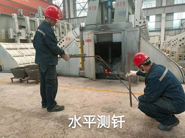 鋁鎂合金分公司電解二車間前期在電解生產過程中測量電解質和鋁水平時,使用的是120°水平測釬,操作時需同時拿測釬和直水平尺,增加操作人員工作量的同時也不易操作。 近期電解二車間黨支部創新小組經過試驗改進,將水平測釬改進為角度測釬,測釬后把使用長120㎝、直徑22mm的不銹鋼圓管,測釬前部為直徑18mm、長度75㎝的實心鋼筋,測釬總重量由原先的5.2kg下降為2.7kg,測釬彎曲角度由60°變為25°,磁力影響寬度也由原來的120㎝下降為30㎝。此外還可以加裝固定快捷角度儀,測量時角度儀卡在測釬后把上,測量時不僅準確而且方便。 改進后的角度測釬重量減輕,磁力影響寬度、彎曲角度減小,不需要同時拿測釬和直水平尺,經過工區多次試驗使用效果良好,得到大家一致好評,現已在工區實際生產當中開始廣泛應用。 |