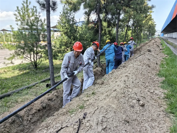 錦陽電廠沖洗平臺改造項(xiàng)目主要是將原露天7米平臺改造為長15米、寬7.4米封閉式陽光棚,實(shí)現(xiàn)運(yùn)煤車輛全方位沖洗。為了確保項(xiàng)目順利實(shí)施、早日竣工投運(yùn),8月12日下午,錦陽電廠機(jī)關(guān)黨支部開展“沖洗平臺電纜鋪設(shè)”主題黨日活動。電廠黨總支書記、經(jīng)理孫陽帶隊(duì)深入項(xiàng)目現(xiàn)場,黨員、積極分子約30余人參加此次活動。 本次活動主要任務(wù)是從卸煤溝PC室到?jīng)_洗平臺鋪設(shè)長度約300余米地纜。鋪設(shè)工作開始前,燃運(yùn)部負(fù)責(zé)人就本次鋪設(shè)的路線、分工及安全注意事項(xiàng)進(jìn)行說明。一切就緒后,在指揮人員的安排下,黨員干部扛起電纜打頭陣,一部分人員負(fù)責(zé)放地纜,一部分人員進(jìn)入坑道扛起地纜,大家按照每人間隔2米排成一列,你抬我扛、齊步向前,同拉一根電纜,共擔(dān)一份責(zé)任,經(jīng)過兩個(gè)小時(shí)的共同努力,一條長約300余米的地纜鋪設(shè)完成,本次活動圓滿結(jié)束。 此次主題黨日活動不僅有效推進(jìn)了項(xiàng)目實(shí)施進(jìn)程,也展現(xiàn)了黨員干部職工不怕臟、不怕苦、不怕累的奉獻(xiàn)精神,進(jìn)一步提升了機(jī)關(guān)黨支部工作服務(wù)生產(chǎn)的意識,增強(qiáng)了黨支部的凝聚力和戰(zhàn)斗力。 |